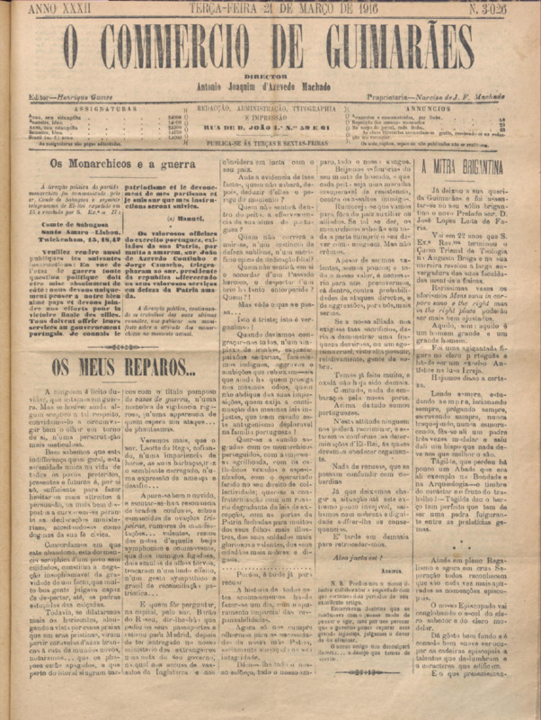Comércio de Guimarães, nº 3026, de 21/03/1916