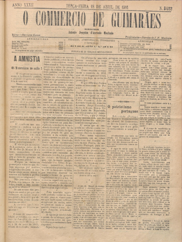 Comércio de Guimarães, nº 3033, de 18/04/1916