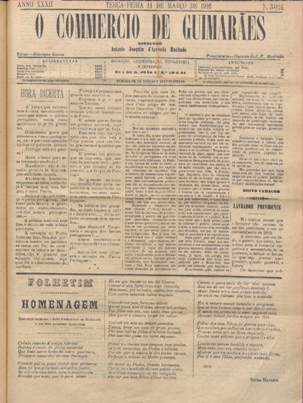 Comércio de Guimarães, nº 3024, de 14/03/1916