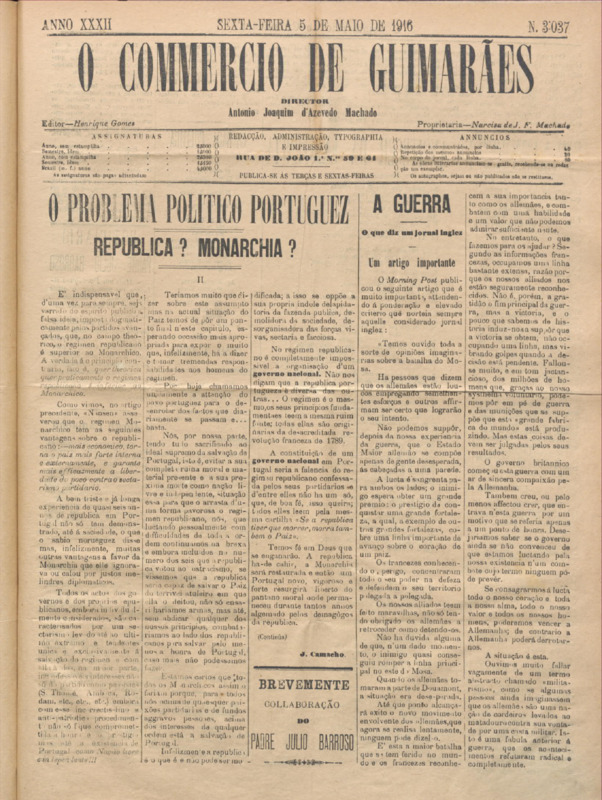 Comércio de Guimarães, nº 3037, de 05/05/1916