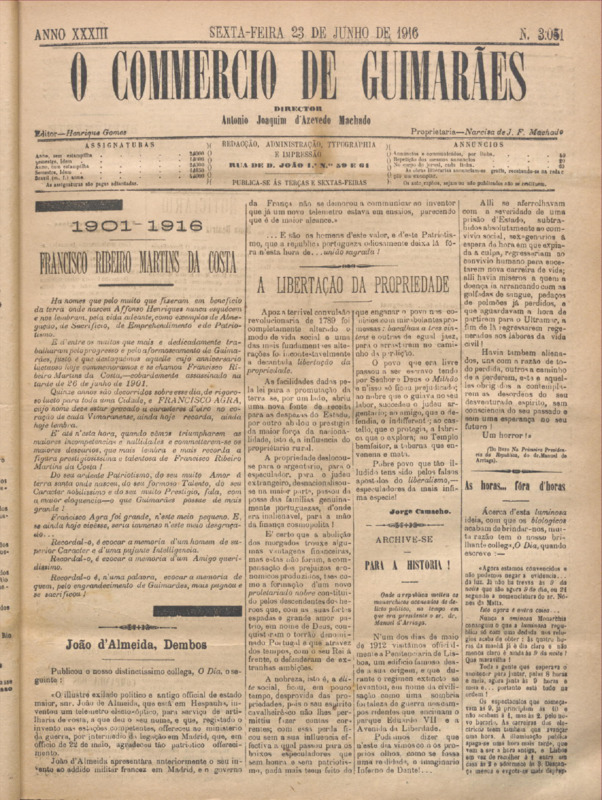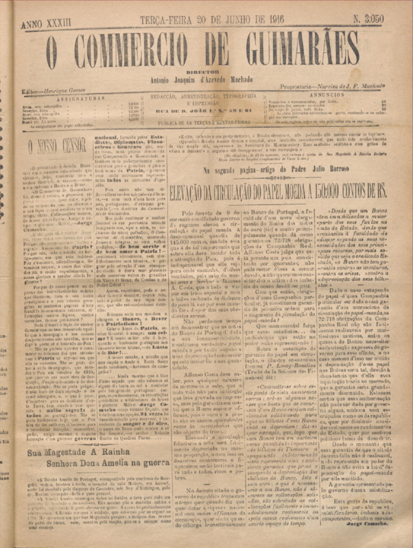 Comércio de Guimarães, nº 3050, de 20/06/1916