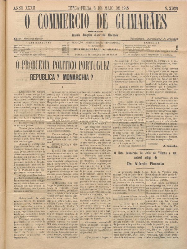 Comércio de Guimarães, nº 3036, de 02/05/1916