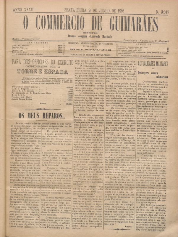 Comércio de Guimarães, nº 3047, de 09/06/1916