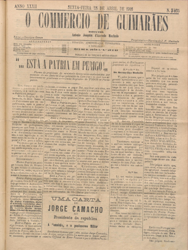 Comércio de Guimarães, nº 3035, de 28/04/1916