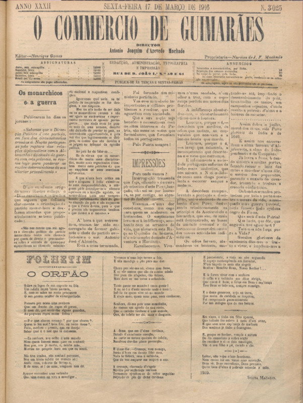 Comércio de Guimarães, nº 3025, de 17/03/1916