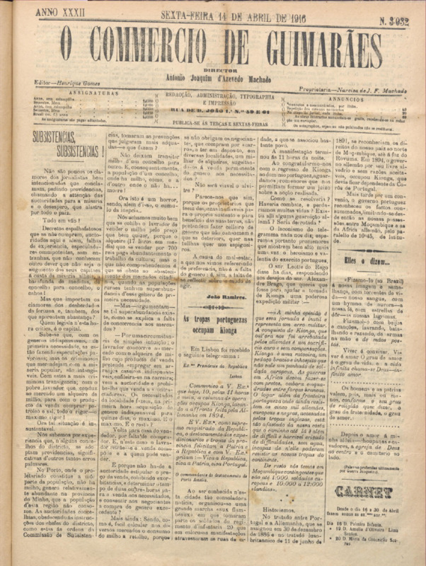 Comércio de Guimarães, nº 3032, de 14/04/1916