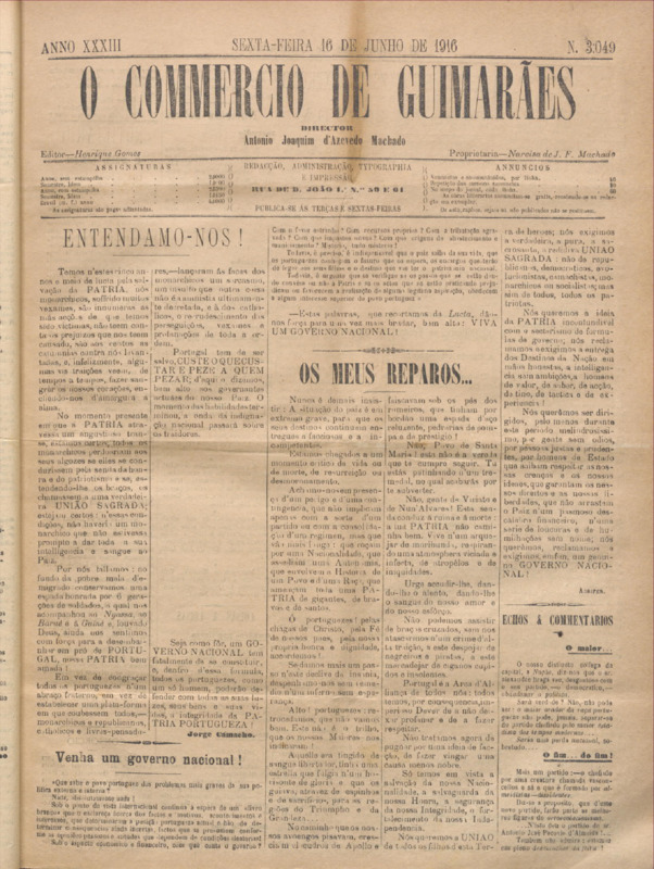 Comércio de Guimarães, nº 3049, de 16/06/1916