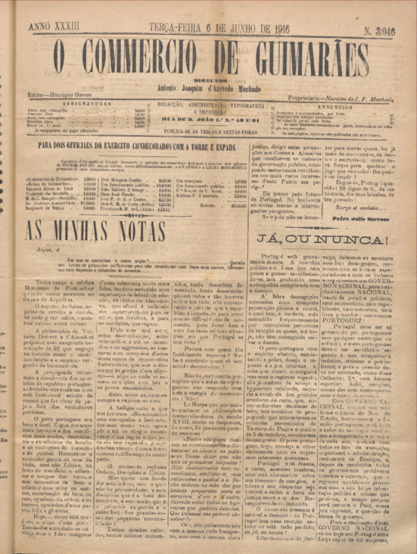 Comércio de Guimarães, nº 3046, de 06/06/1916