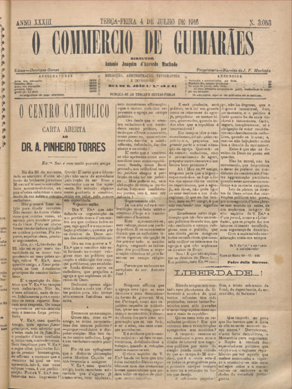 Comércio de Guimarães, nº 3053, de 04/07/1916
