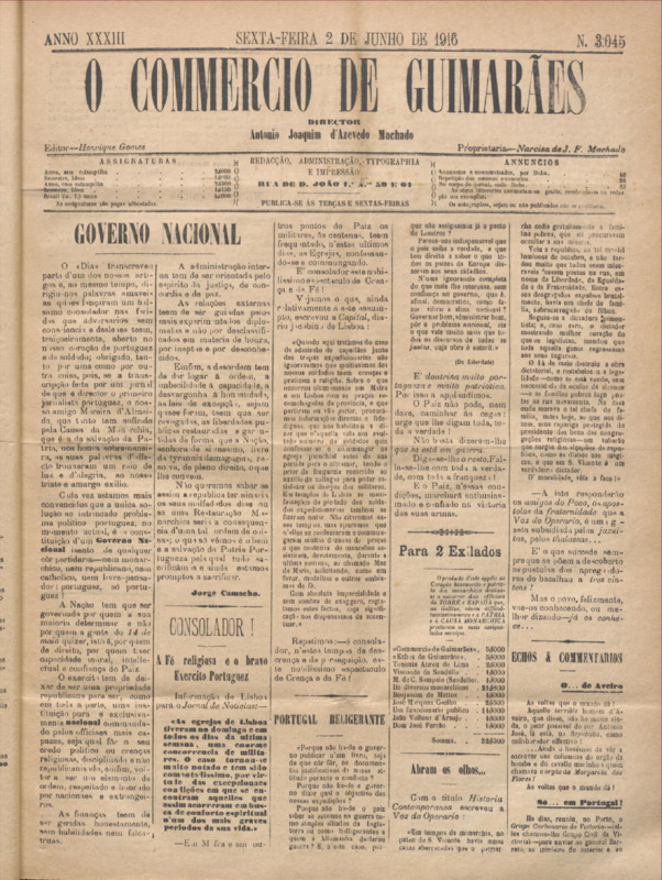 Comércio de Guimarães, nº 3045, de 02/06/1916
