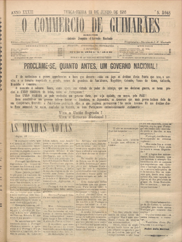 Comércio de Guimarães, nº 3048, de 13/06/1916