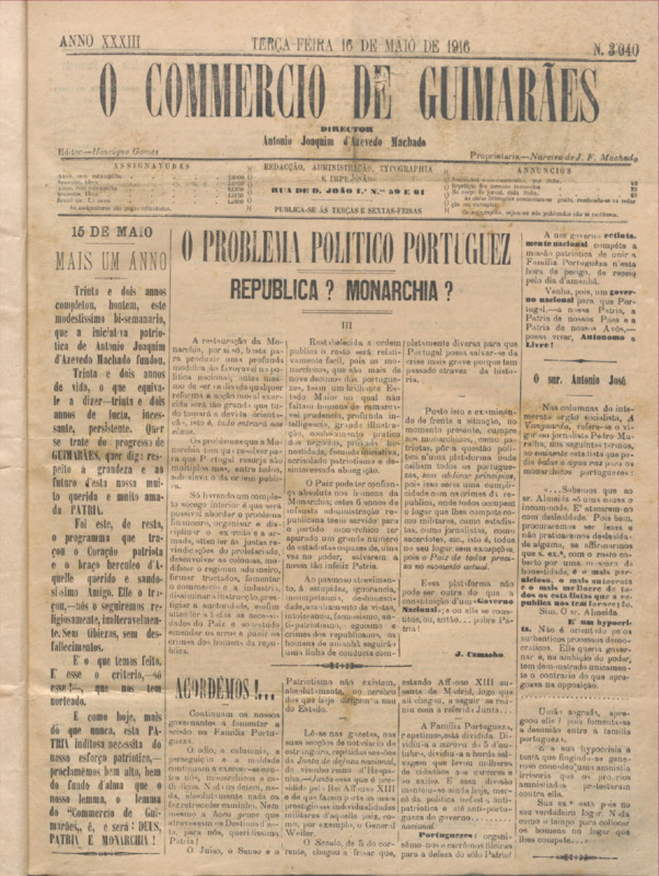 Comércio de Guimarães, nº 3040, de 16/05/1916