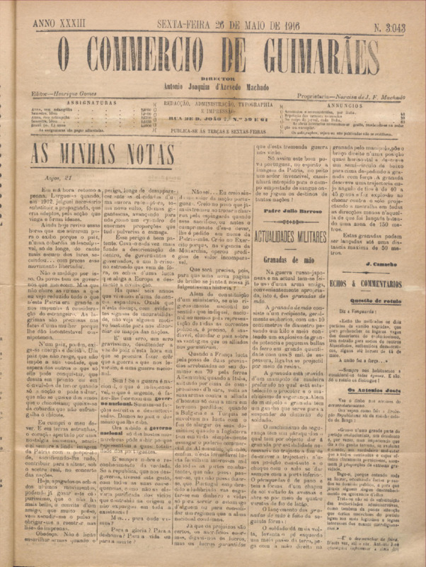 Comércio de Guimarães, nº 3043, de 26/05/1916