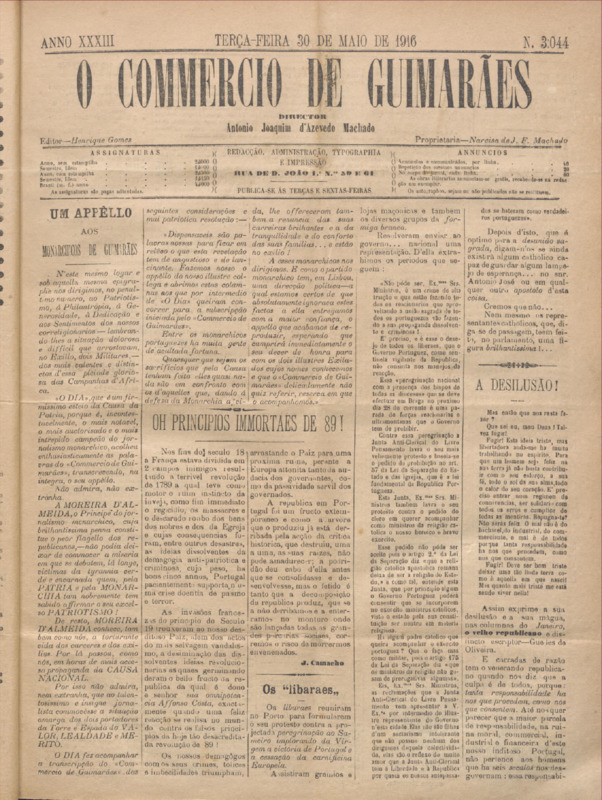 Comércio de Guimarães, nº 3044, de 30/05/1916