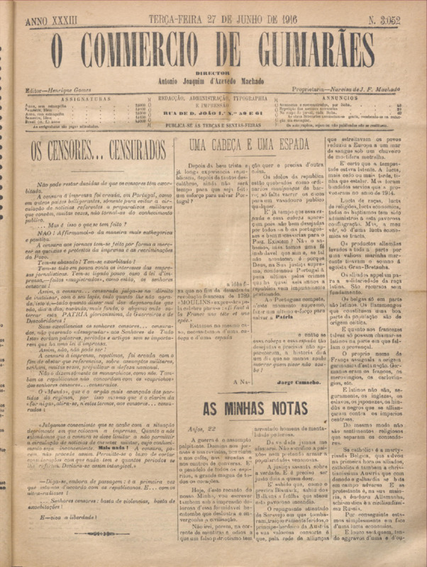 Comércio de Guimarães, nº 3052, de 27/06/1916