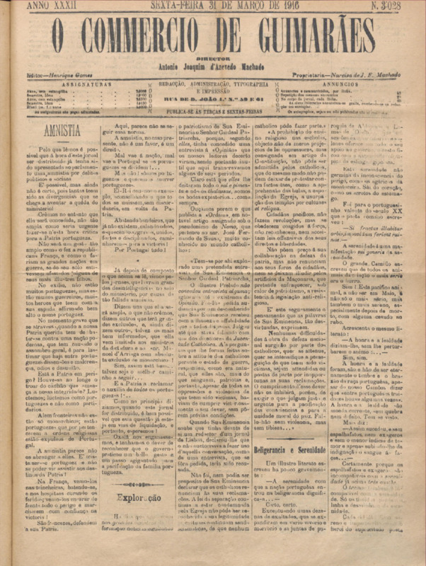 Comércio de Guimarães, nº 3028, de 31/03/1916