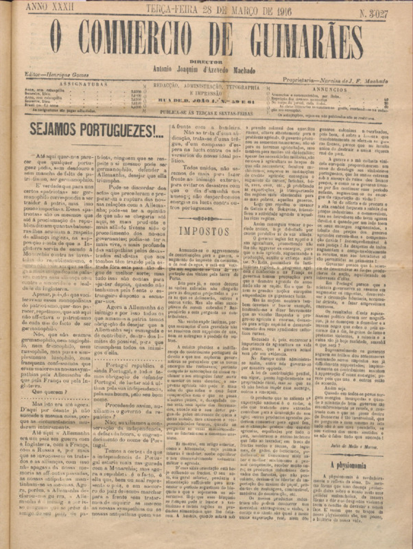Comércio de Guimarães, nº 3027, de 28/03/1916