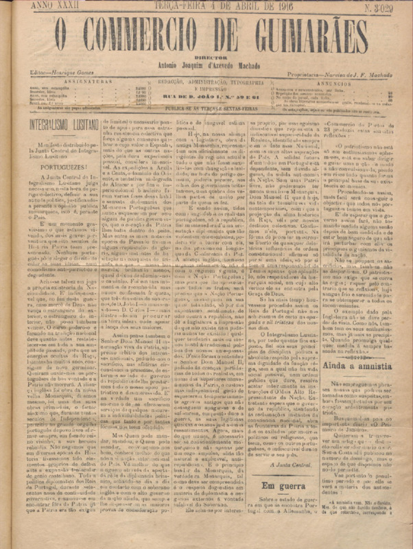 Comércio de Guimarães, nº 3029, de 04/04/1916