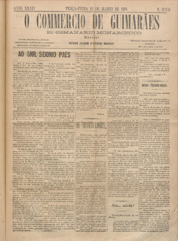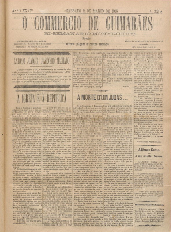 Comércio de Guimarães, nº 3206, de 02/03/1918