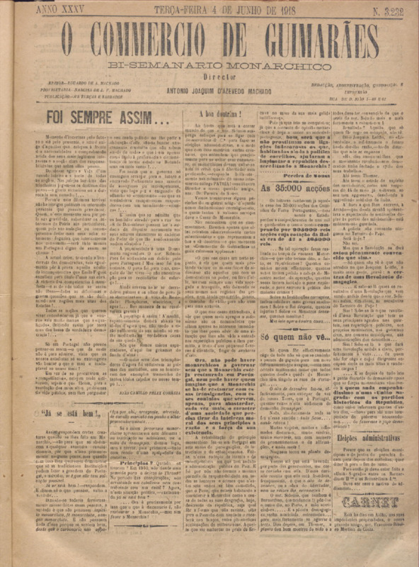 Comércio de Guimarães, nº 3232, de 04/06/1918