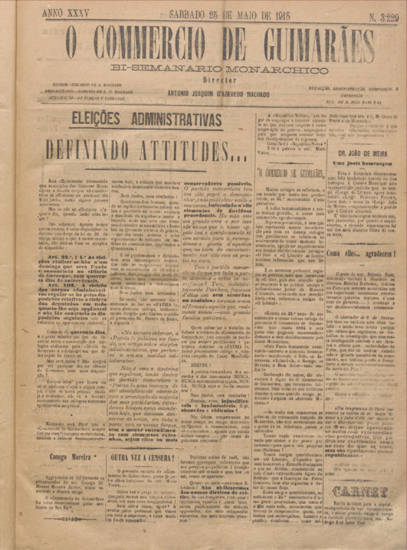 Comércio de Guimarães, nº 3229, de 25/05/1918