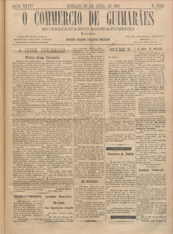 Comércio de Guimarães, nº 3219, de 20/04/1918