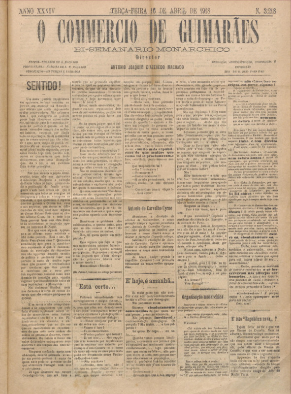 Comércio de Guimarães, nº 3218, de 16/04/1918