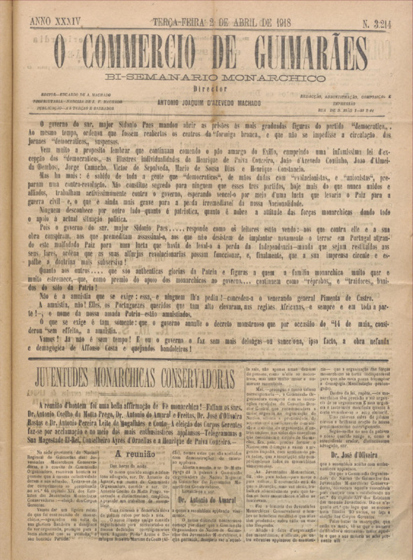 Comércio de Guimarães, nº 3214, de 02/04/1918