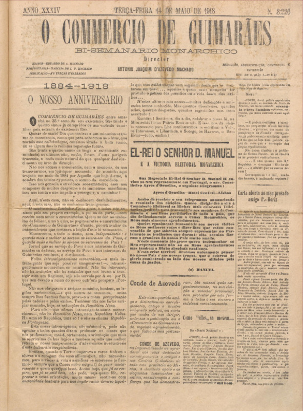 Comércio de Guimarães, nº 3226, de 14/05/1918