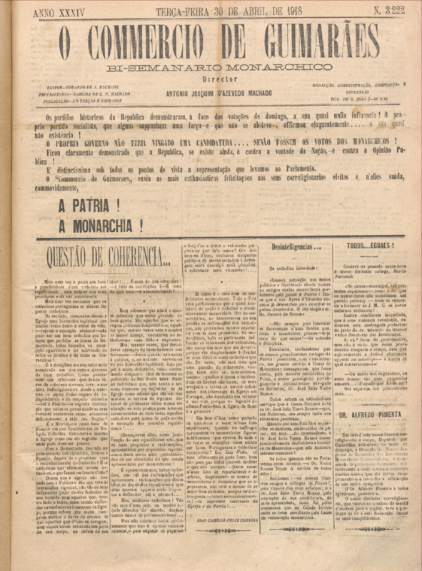 Comércio de Guimarães, nº 3222, de 30/04/1918