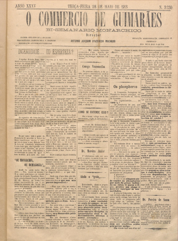 Comércio de Guimarães, nº 3230, de 28/05/1918