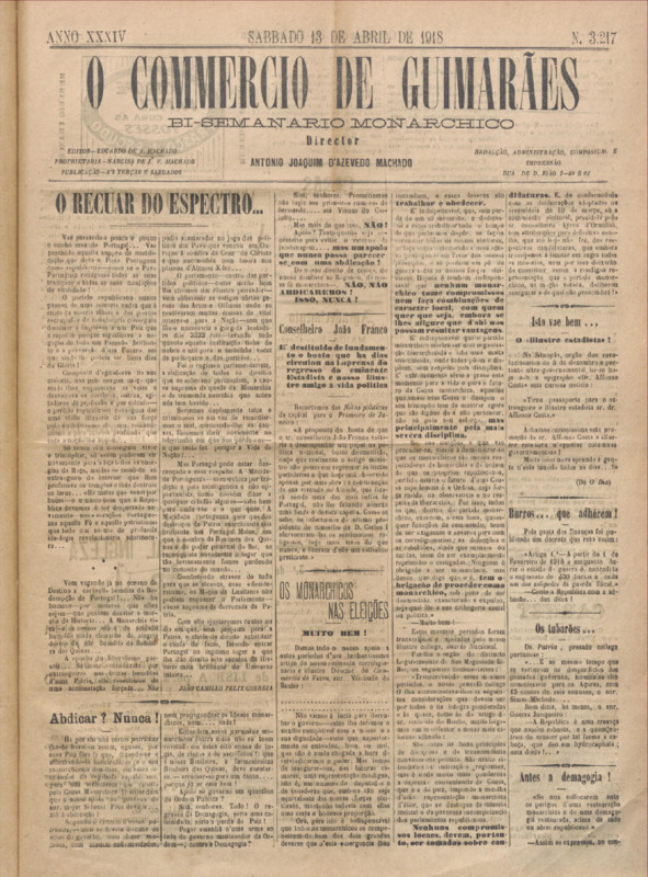 Comércio de Guimarães, nº 3217, de 13/04/1918