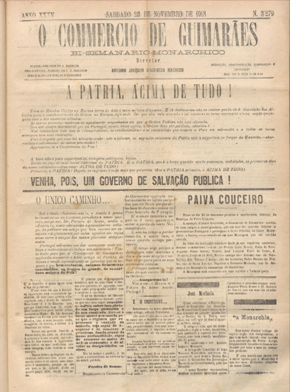Comércio de Guimarães, nº 3279, de 23/11/1918