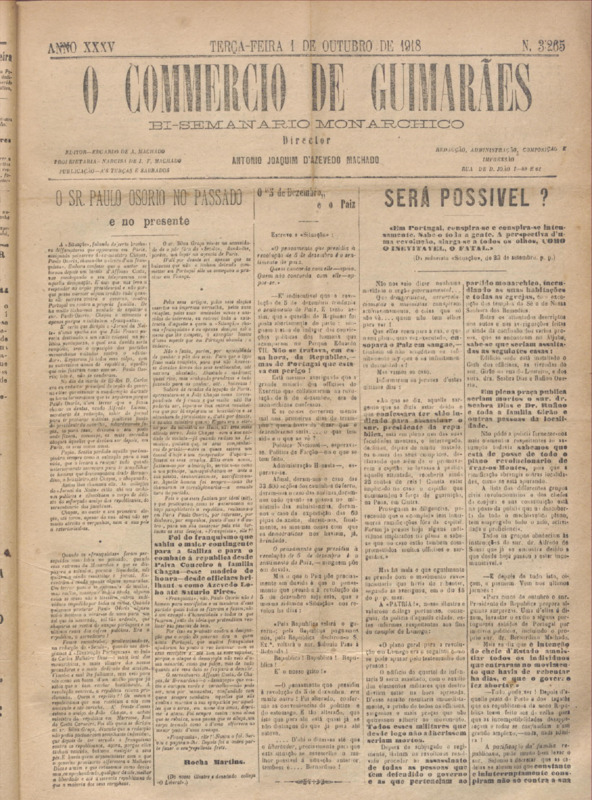 Comércio de Guimarães, nº 3265, de 01/10/1918
