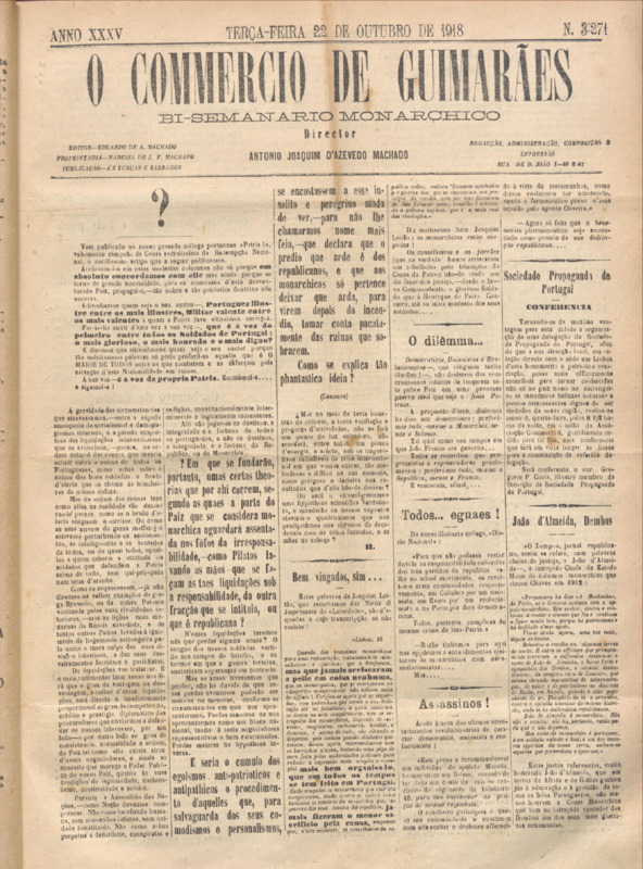 Comércio de Guimarães, nº 3271, de 22/10/1918