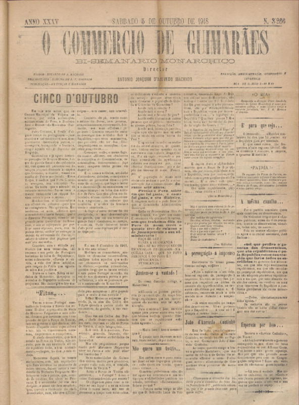 Comércio de Guimarães, nº 3266, de 05/10/1918