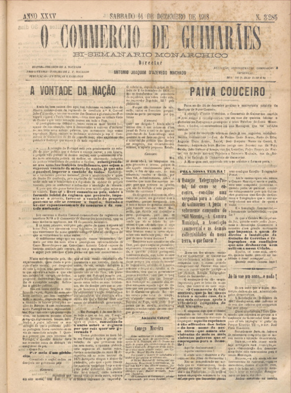 Comércio de Guimarães, nº 3285, de 14/12/1918