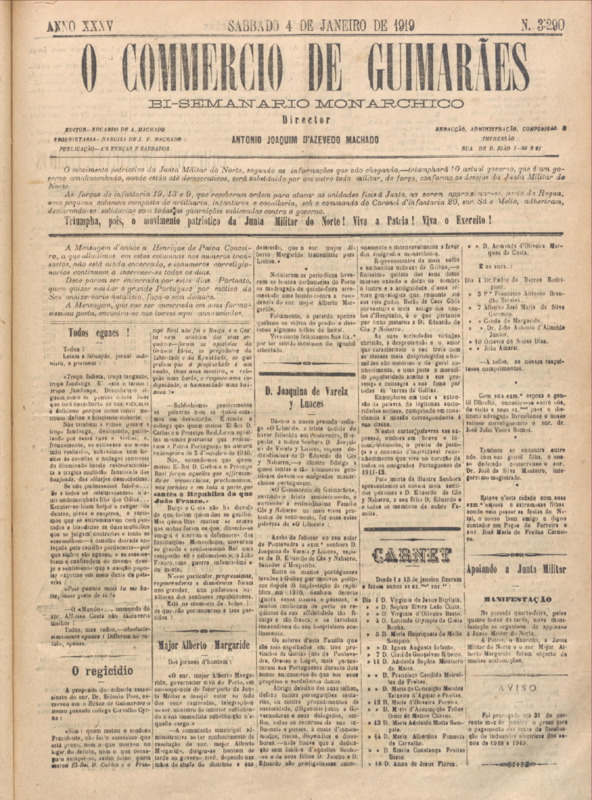 Comércio de Guimarães, nº 3290, de 04/01/1919