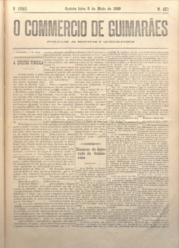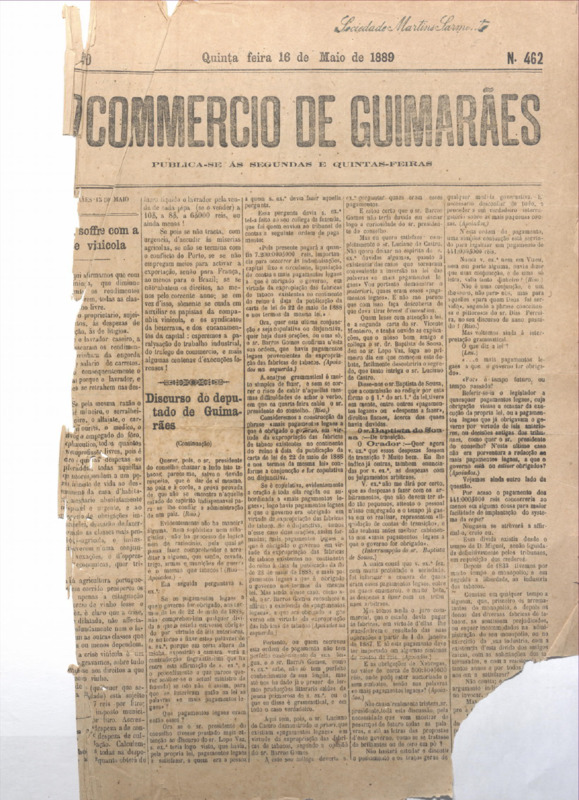 Comércio de Guimarães, nº 462, de 16/05/1889