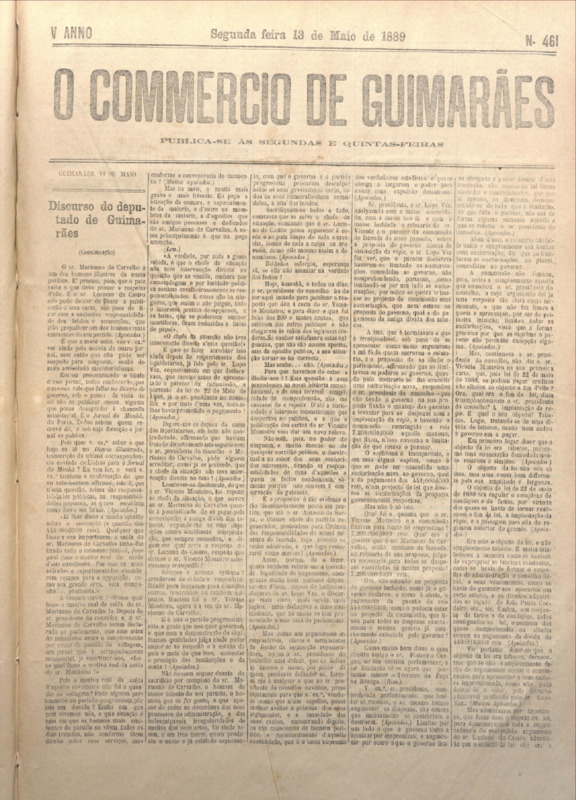 Comércio de Guimarães, nº 461, de 13/05/1889