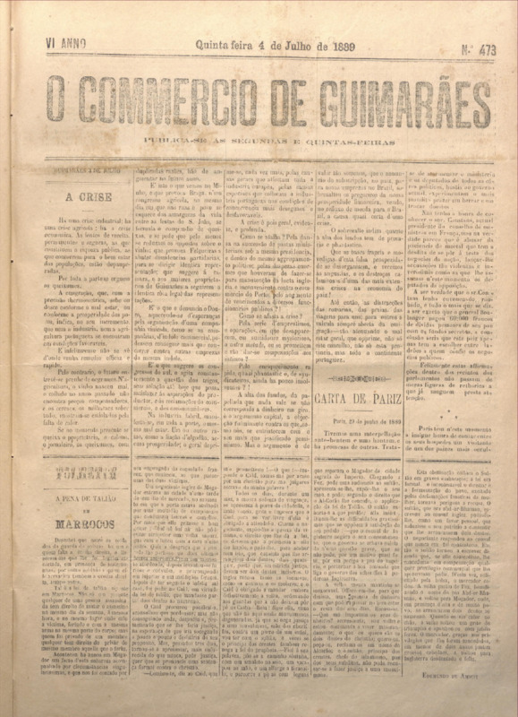 Comércio de Guimarães, nº 473, de 04/07/1889