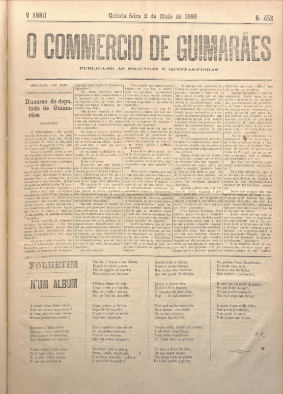 Comércio de Guimarães, nº 458, de 02/05/1889