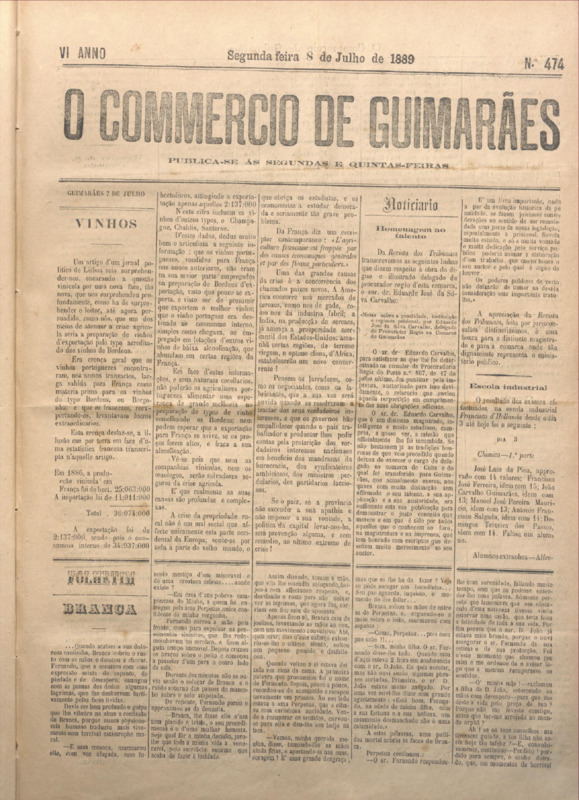 Comércio de Guimarães, nº 474, de 08/07/1889