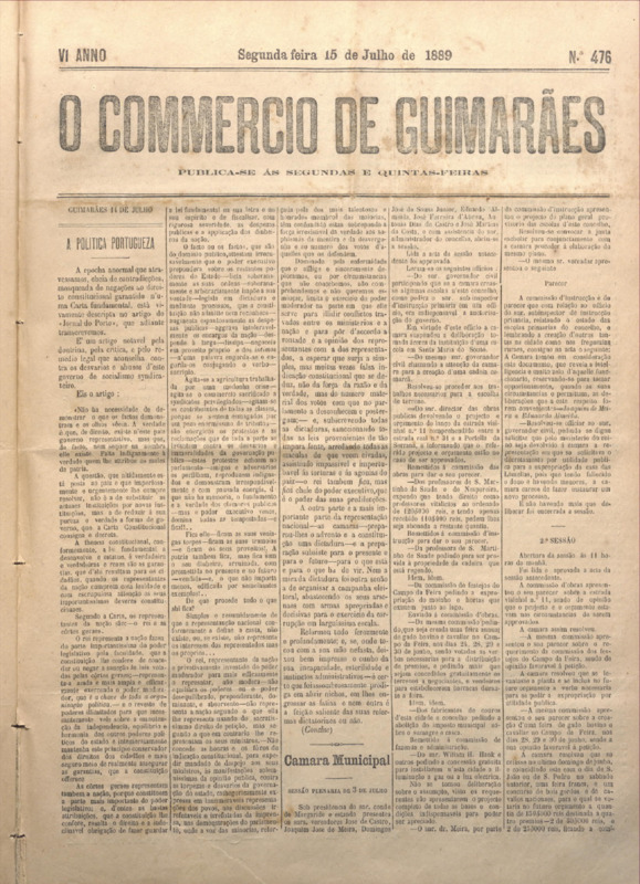 Comércio de Guimarães, nº 476, de 15/07/1889