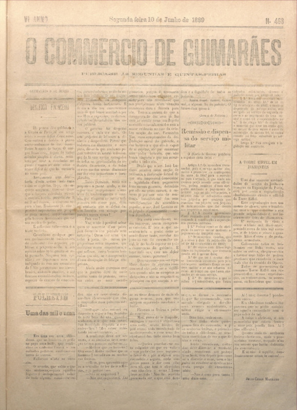 Comércio de Guimarães, nº 468, de 10/06/1889