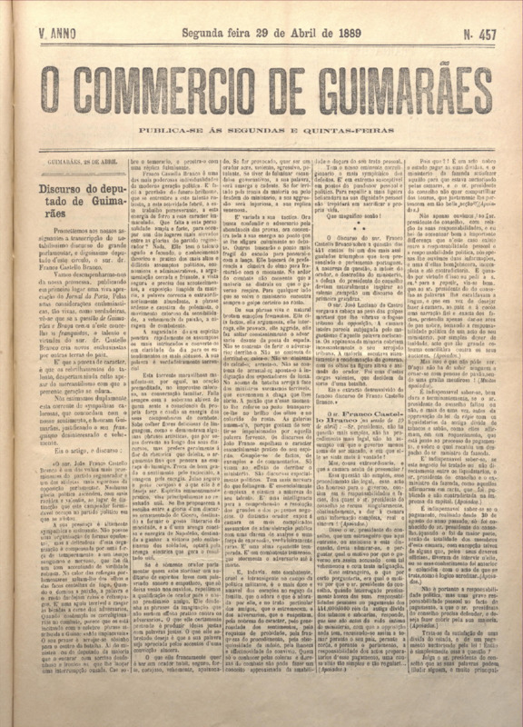 Comércio de Guimarães, nº 457, de 29/04/1889