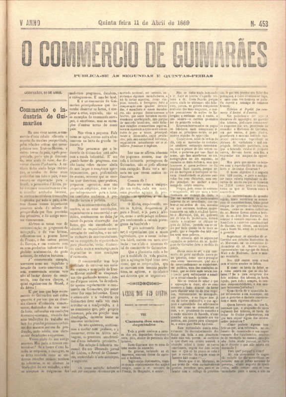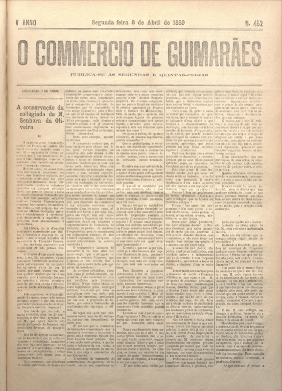 Comércio de Guimarães, nº 452, de 08/04/1889