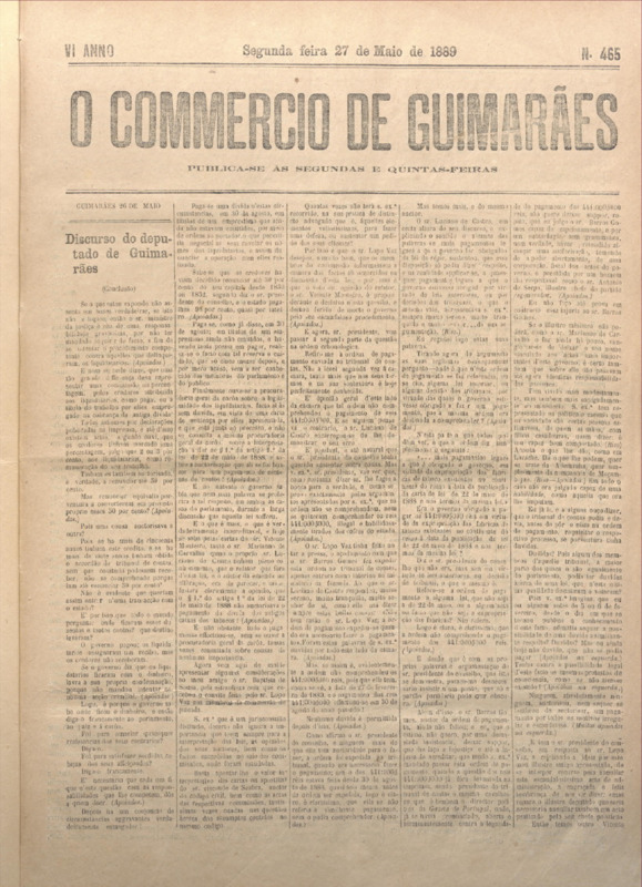 Comércio de Guimarães, nº 465, de 27/05/1889