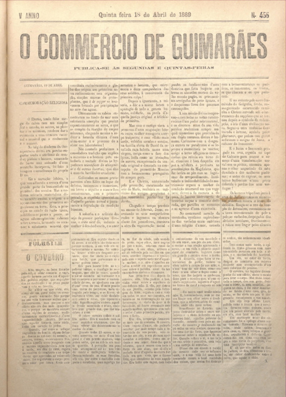 Comércio de Guimarães, nº 455, de 18/04/1889