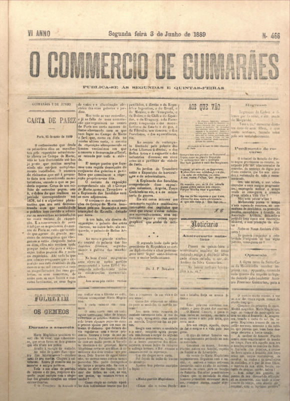 Comércio de Guimarães, nº 466, de 03/06/1889